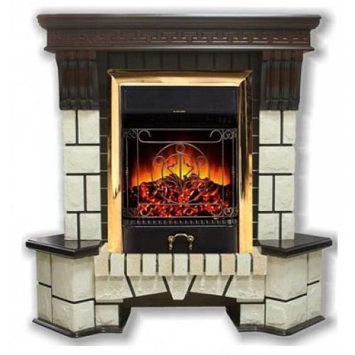 Каминокомплект InterFlame Экстер-M угловой (дуб)+Majestic Brass