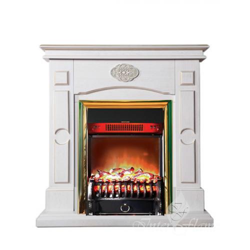 Каминокомплект InterFlame Мери (белый с патиной)+Fobos Brass