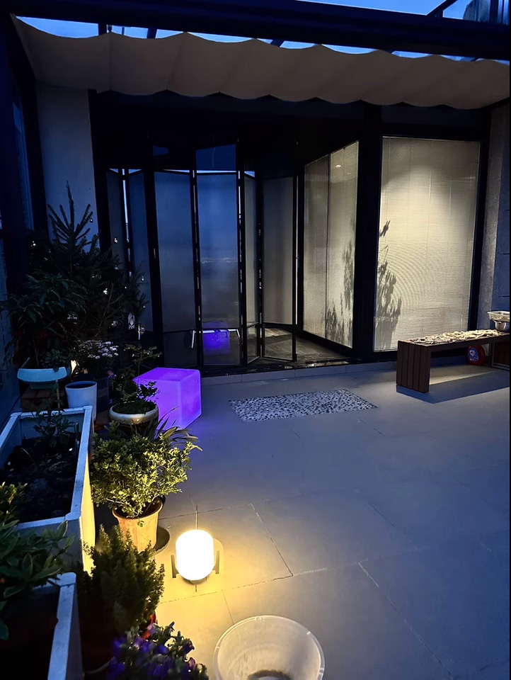 - Цветовая гамма: светильник предлагает 16 различных цветов, что позволяет создать уникальную атмосферу в вашем саду или на террасе.